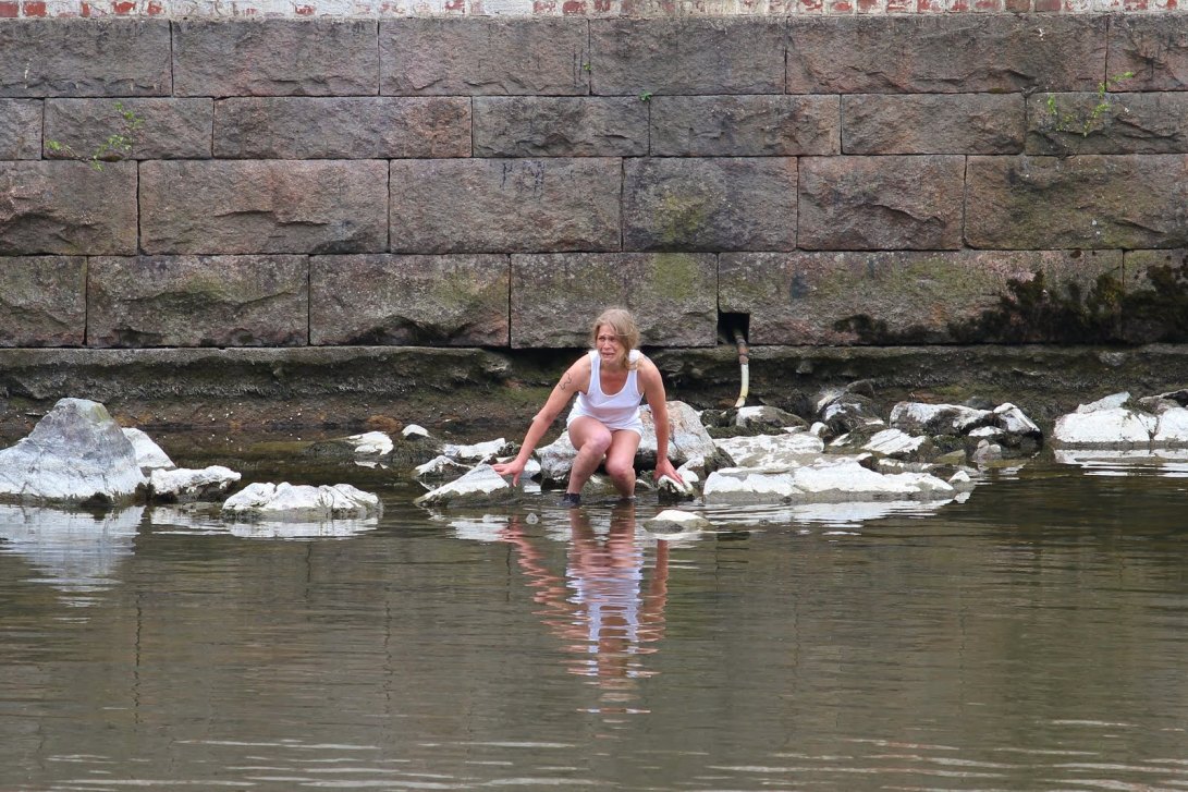 Teoksessa kävelin jokeen, padon eteen ja esitin vedelle kirjoittamani itkun. Pato estää joen alkuperäisasukkaiden, raakun ja kalojen liikkumisen ja lisääntymisen. Sen sulkua ohjataan toiselta paikkakunnalta sademääriä lukevalla automaatilla.