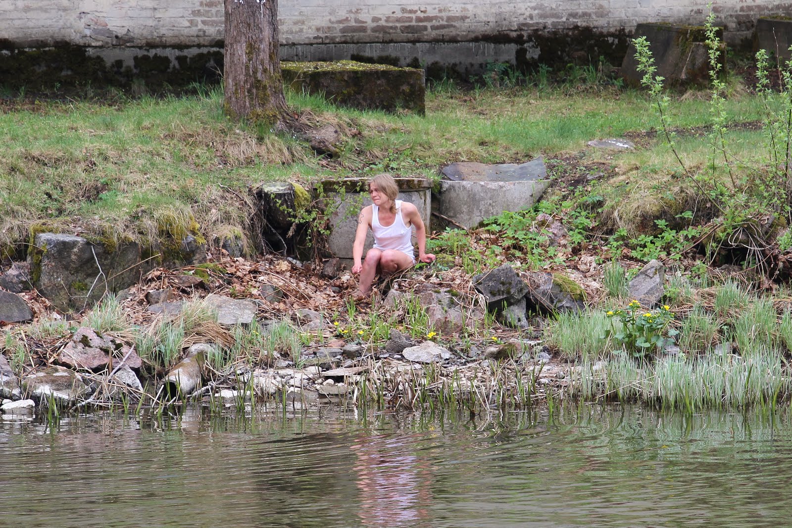 Performance for the dying river, Mustionjoki river. Lamenting for the dying river at southern Finland as a part of positive terrorism project. Performed next to the dam, forbidden area, private property of the energy company, leading the processes in the dam from a nother city with the electric remote.